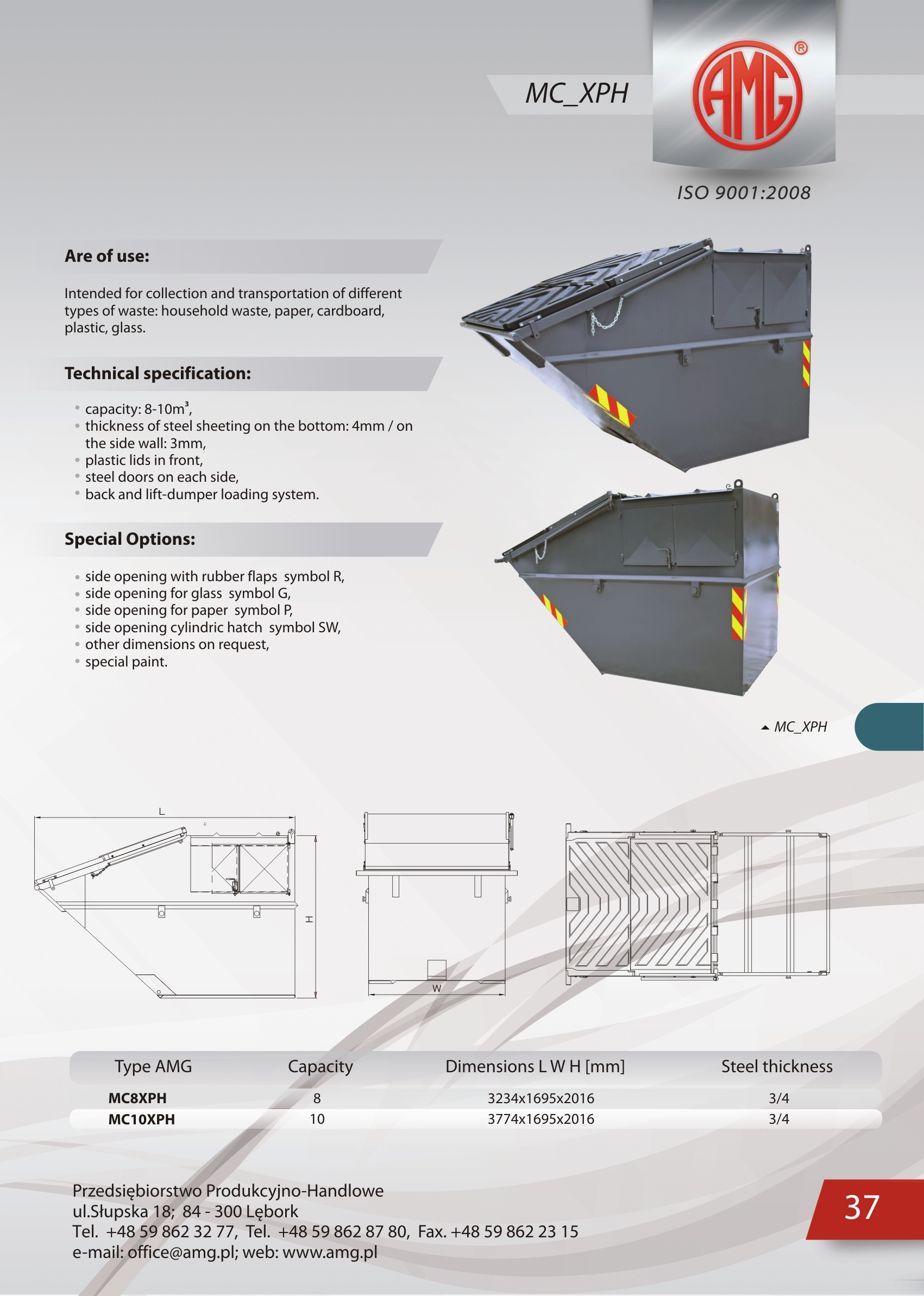 • thickness of steel sheets bottom: 4mm /side walls: 3mm,